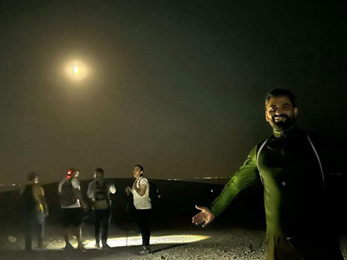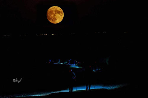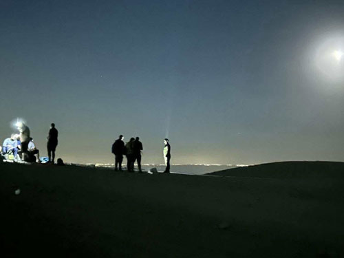 اعضاء الفريق خلال المسار الليلي لمشاهدة الظاهرة الفلكية لخسوف القمر الكلي | القمر الأزرق العملاق خلال المسار الليلي - تصوير محمود معطان |