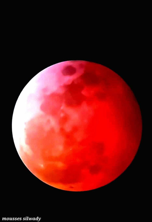 التقط منصور شاهين وهو مرشد في الفريق، صوراً للقمر الدموي في أوّج خسوفه، ويا لها من ظاهرة فلكية ساحرة، قيل حولها إن القمر بهذه الهيئة يكون نذيرًا للحروب وأيضًا رمزًا للخصب والأمل.