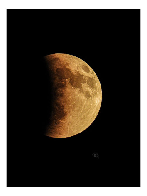 القمر الأحمر الدموي كما يظهر في سماء فلسطين – تصوير موسى السلوادي | صورة تظهر بدء خسوف القمر في جبال اريحا خلال المسار الليلي |
