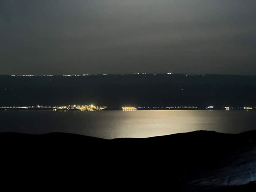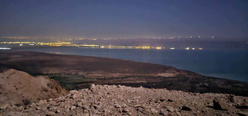 لقطة بنورامية من اطلالات البحر الميت بعد انتهاء ظاهرة خسوف القمر